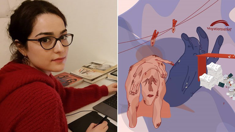 Artist Hayfaa Chalabi criticises the Migration office through her illustrations